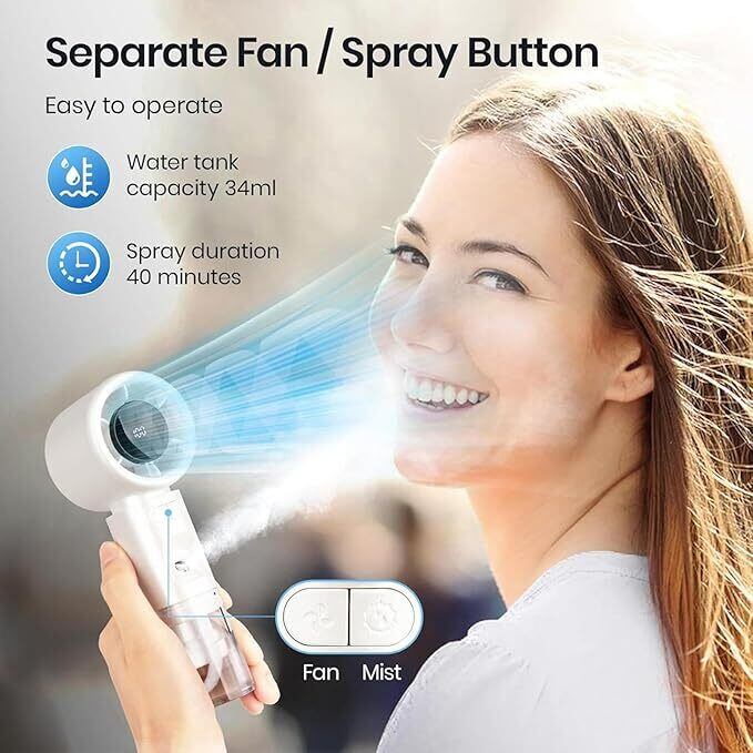 ミストファン,水噴霧付き扇風機 ミストファン - 男女兼用ミニデジタルディスプレイウォータースプレーツール トラベル アウトドア キャンプ メイク用