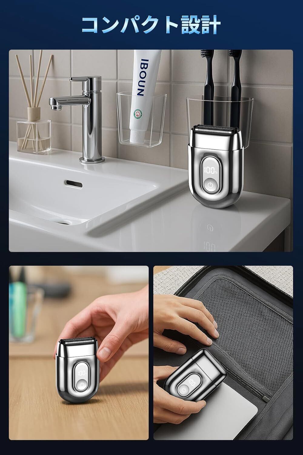 【ミニサイズ&抜群の携帯性】本製品は通常の卵ほどの高さで、重量もわずか180gの超軽量・コンパクト設計。ポケットやビジネスバッグ、オフィスデスク、車の収納スペースなどにも簡単に収納できます。手にフィットする流線型の丸みあるボディは握り心地も抜群。出張や毎日の通勤、外出時でも手軽に身だしなみを整え、自信を持って人前に出られます。