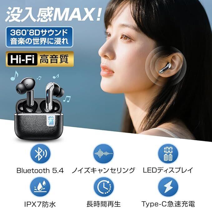 【超長時間再生&Type-C急速充電】 イヤホンワイヤレス 最大6時間のイヤホン単体使用、充電ケース併用で最大40時間、待機時間は驚異の60時間。通勤・通学・仕事・スポーツと一日中活躍するロングバッテリー。さらに、Type-C急速充電対応で、わずか1.5時間でフル充電が完了。バッテリー残量もLEDディスプレイで簡単に確認でき、いつでも安心して使用できる 完全ワイヤレスイヤホン です。